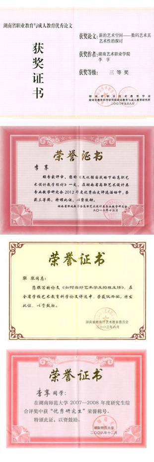 2012年 论文获"湖南省高职艺术类专业教学研究会优秀论文评选活动三等奖”;