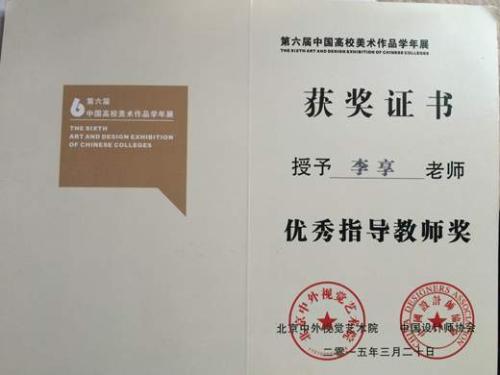 2014年 获第六届全国高校美术作品学年展优秀指导教师奖;