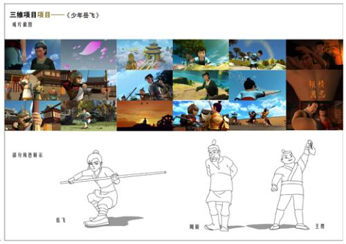 2013年 参与四川美木学院影视动画学院《少年岳飞》项目,担任角色设计、分镜设计、3D贴图、场景设计。方案均被来用。