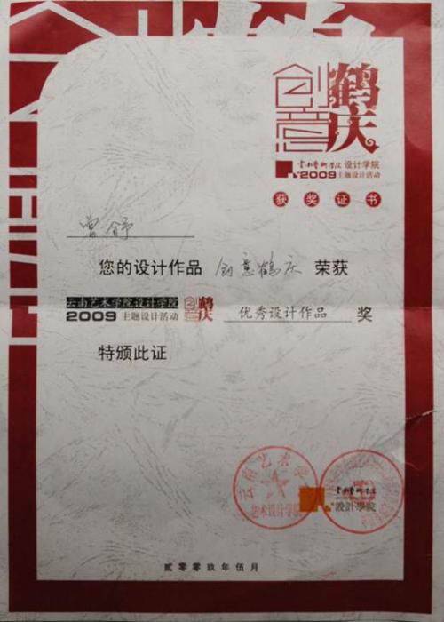 2007年9月-2011年7月 云南艺术学院影视动画专业全日制本科优秀毕业生毕业。