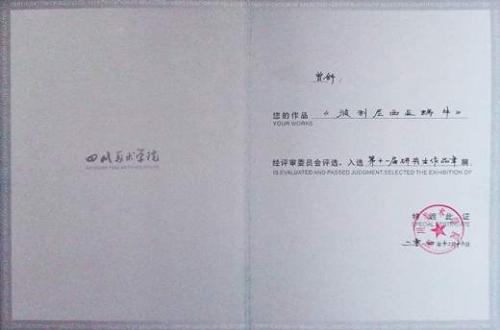 2012年9月-2015年6月 四川美木学院影视动画学院动画艺术专业三年全日制硕士研究生毕业。