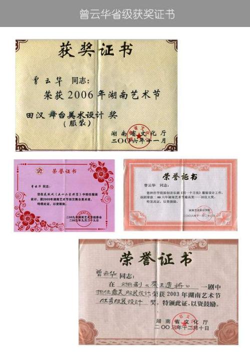 2006年11月 获得湖南省第二届艺术节田汉秀服装设计奖;