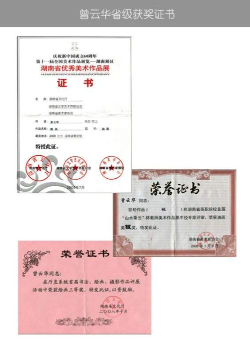 2008年1月 获得湖南省高职院校首届“山水乘云”杯教师美术作品展银奖;
